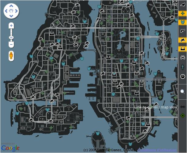 Au dela d'une cartographie de la ville, qui indiquerait la localisation de chaque item (récupération points de vie, armure, etc.) ainsi que les endroits pour repeindre sa voiture, obtenir des bonus de cascade, etc., ce qui en soi serait deja un sacré boulot, là, on est clairement un cran au dessus : la ville a été recrée façon google maps.
