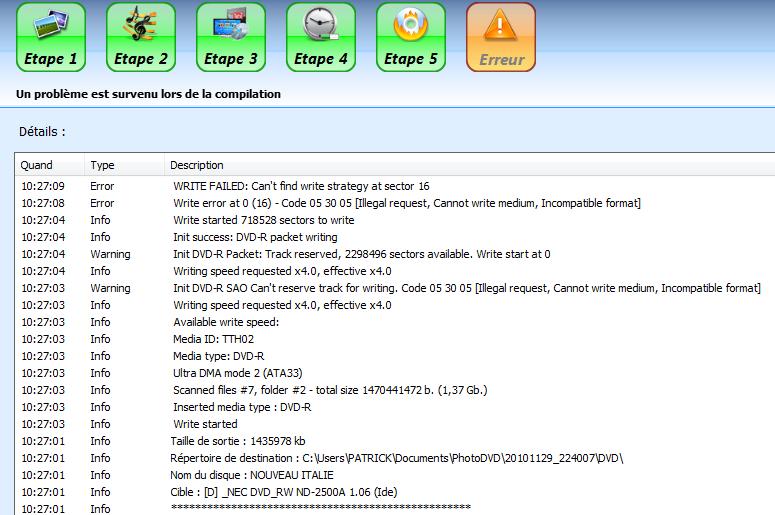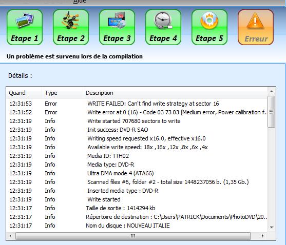 Je viens de passer de dvd3 à dvd4 avec Win7 depuis je n'arrive plus à graver.Je ne comprends pas le message d'erreur et le code.Ci-joint la photo écran .
