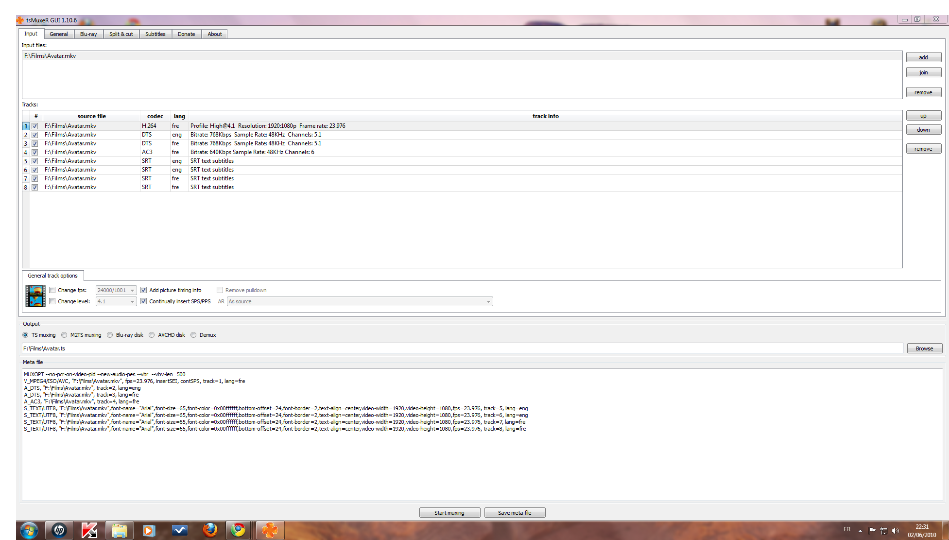 bonsoir , j'ai un fichier mkv de 15go que j'aimerai pouvoir lire sur ma freebox , j'ai decouvert tsmuxer j'ai suivi les conseils d'un tuto du site et j'ai ce message d'erreur:Invalid SRT format. "0027A4E8" is invalid timing info tsmuxer continu , mais il semble que le fichier que j 'obtiens ne fasse que 420mo ...